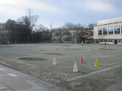 今日は「6年生を送る会」を行う予定です。今回は、校庭で6年生と下級生が玉入れや大玉送り、長縄で交流したり、メッセージカードを渡したりします。先程まで雨が降っていたため、校庭に溜まった水をはいたり、砂を入れたりして教職員が準備をしました。6年生の思い出に残る会ができれば、と思います。