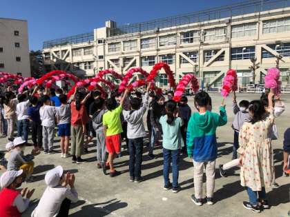 最後は、1〜5年生が書いた6年生への感謝のお手紙を手渡しました。6年生の照れている様子が可愛らしく映りました。閉会後は、在校生に見守られて校庭を一周し、花のアーチをくぐって退場しました。会が無事終わり、いよいよ卒業が近づいてきました。