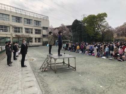 始業式では、新6年生2名が新年度のスタートにあたり6年生としての決意・抱負を力強く話しました。原稿を見ずに、全校児童に語り掛けるように話す姿はとても立派でした。代表児童の話に真剣に耳を傾ける6年生の姿からは、最高学年としての自覚がうかがえました。