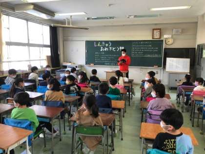 学級開き初日の様子です。どの学級も一人一人の名前を呼んで健康観察を丁寧に行っていました。自己紹介カードを作成したり、当番や係を決めたりと学級をつくりあげていくための活動はたくさんあります。休み時間は新しい学級の友達と元気いっぱい校庭で遊んでいました。新しい教科書も配布しました。今日一日の様子をぜひお家で聞いてあげてください。また教科書をはじめ、配布物の確認もお願いいたします。