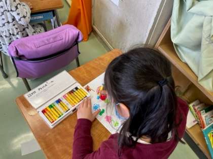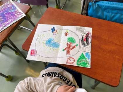 好きなものを画用紙いっぱいに描いて、楽しい絵ができました。