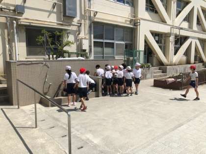 この間、桜が咲いたかと思えば、ここ最近はすっかり夏を思わせる陽気となっています。学校では、十分な水分補給への配慮を行うとともに、ミストシャワーを設置し「涼」をとれるよう暑さへの対策をとるようにしています。