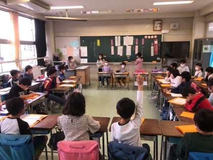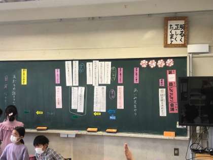 3年3組の学級会の様子です。学級会にも名前を付け「にこにこ会議」としていました。今日の議題は「学級目標を決めよう」でした。司会グループの進行に沿って、活発に意見を出し合っていました。そう考えた理由をしっかりと伝えたり、友達の考えに付け足しをしたりと、上手に話し合うことができていました。これからも、みんなの「にこにこ笑顔」のために知恵を出し合い、問題を解決したり、活動をつくり出したりするすてきな学級会になりそうです。