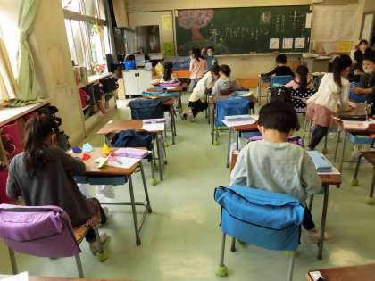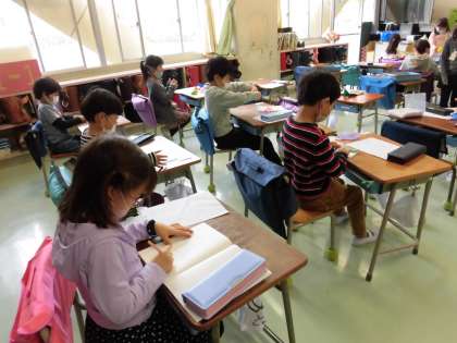 多くの児童が自分の席で、折り紙をしたり、絵をかいたりしていました。