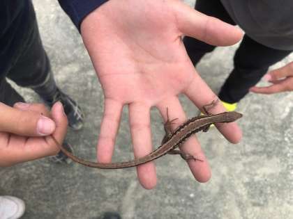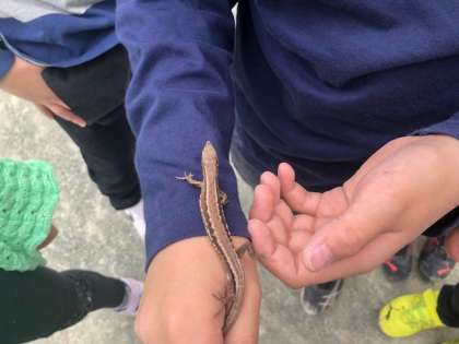 中休み、校庭で声を掛けてくれた4年生が持っていたのは「カナヘビ」。理科で里山に出かけた際に見付けたそうです。「名前は勇気と言います」と紹介してくれました。春本番、生き物たちも元気に外を駆け回っているようです。