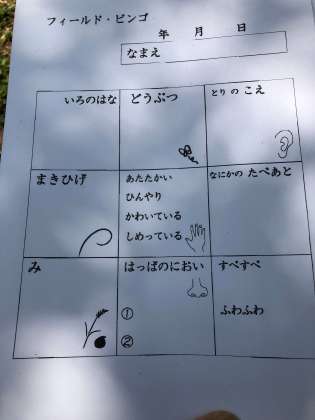 19日(火)、2年生が里山ボランティアの方と共に、「フィールドビンゴ」に取り組みました。「とりのこえ」や「はっぱのにおい」など、5感を使い、様々な視点で里山の春の自然を見付けました。「ふきって『ふきのとう』とどうちがうの?」「このはっぱはすーすーした匂いだね。」など、ボランティアの方々とたくさん交流しながら活動していました。