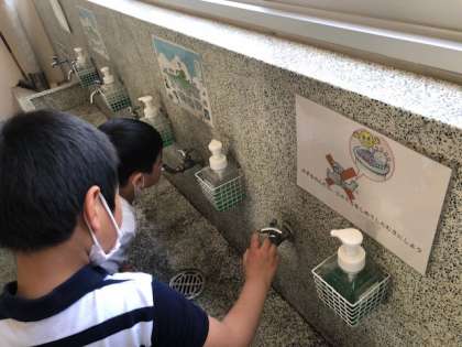 1年生が水飲み場で、健康委員会の高学年が作ったポスターを読み上げ「蛇口は下に向けるんだって」と友達に教えていました。なぜ下向きにするのか説明してあげると、納得した様子で「分かりました」と元気に答えてくれました。飲んだ後しっかりと蛇口を下に向けていました。