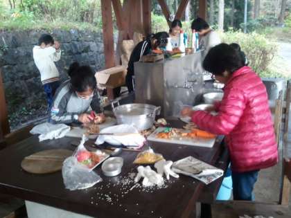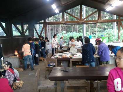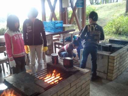 14:30 夕食の準備が始まりました。メニューは移動教室恒例のカレーライスです。火起こしから調理まで、大仕事です。