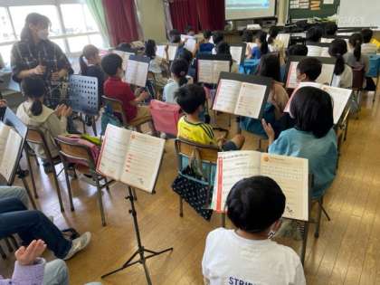 4年生から高音楽室で学習をしています。「花束をあなたに」の曲のリズムをつかむために手をたたいてリズム打ちをしました。その後、歌ってみると驚きの変化が!
