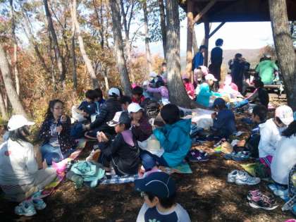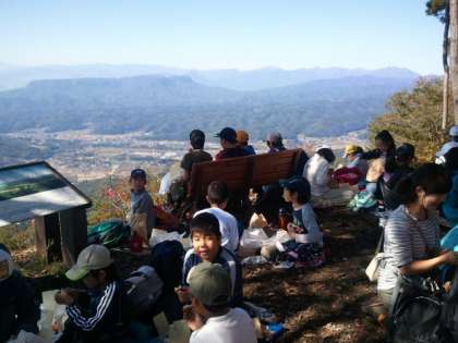 11:45 全員無事山頂に到着しました。眼下の景色を見ながらの食事です。