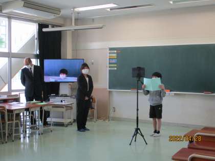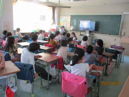 感染症対策のためリモートでの実施でしたが、テレビに先生が映ると教室からは歓声があがりました。先生達も子どもからの手紙を、嬉しそうに受け取っていました。