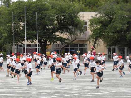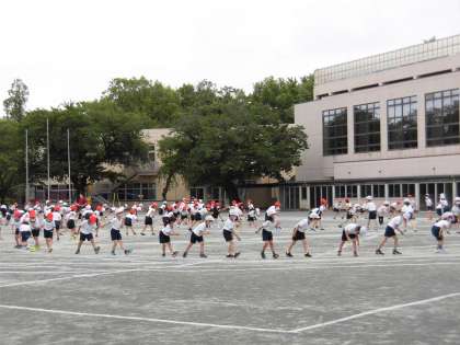 雨が降り出しそうな空模様でしたが、校庭では各学年の運動会練習が次々に行われました。