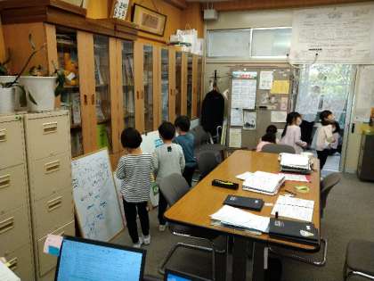 1年生が学校の探検で校長室に来ました。みんなで入ると狭いので、グループごとに、入るときは「失礼します」、出るときには「ありがとうございます」ときちんとあいさつすることができました。校長室にあるアンパンマンのぬいぐるみを見て、「見たことあるよ」と話してくれました。「どこで見たの?」と、尋ねると「入学式でお話ししたでしょ」と答えてくれました。入学式で話したことを覚えていてくれたのですね。うれしくなりました。