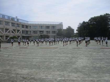 運動会まであと2週間になりました。校庭では6年生が練習に取り組んでいました。音に合わせ、6年生全員の動きが揃ってきています。最上級生らしい集団行動の美しさを見ることができそうで、楽しみです。