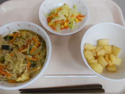 カレーうどん じゃがいものからあげ コーンサラダ 牛乳