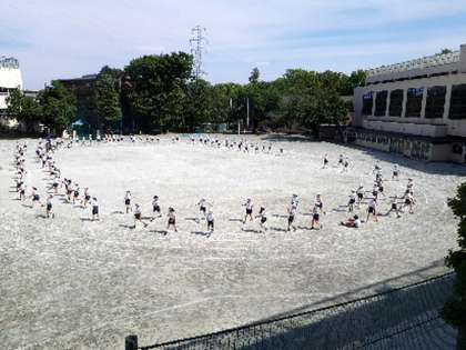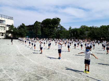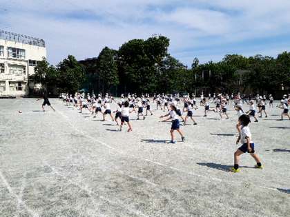 4年生のエイサー練習のようすです。校庭で演技の流れを確認しながら、動き一つ一つの完成度も高めていきました。午後からだいぶ気温が上がりました。最後まで集中を切らさず、真剣に取り組んでいました。今日はまだパーランクは使っていません。パーランクの音が校庭に響く日が楽しみです。