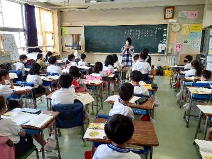 3年生の国語の授業の様子です。季節を感じる言葉の学習で、春を感じる言葉集めをしました。その後は、生活の中で春らしさを感じた瞬間を、春の言葉を使って単作文作りをしました。「さくら」「たけのこ」などの言葉を使って上手に作文していました。