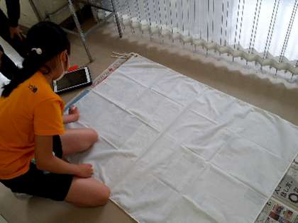 5年生のソーラン節の衣装を配りました。来週はいよいよ運動会です。衣装も配られたことで、子どもたちの気持ちも高まったようです。また、それぞれのクラスで大漁旗の作成も始まりました。どんなデザインの旗が完成するのか楽しみです。