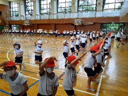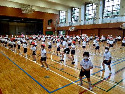 2年生の練習の様子です。元気な曲、元気な踊りにとにかく気分が盛り上がります。踊りもだいぶ完成に近付いていました。担当の教員からは、間違えてもいいから自信をもって踊ること、見ている人たちを盛り上げるつもりで大きく踊ることを教わりました。ジャンプしながら手拍子を打つ場面は、見ている方々も合わせて手拍子をしたくなる場面です。ぜひ、大きな手拍子で子どもたちの頑張りに応えていただければと思います。