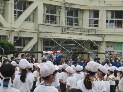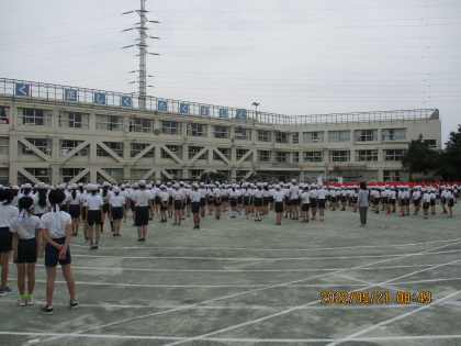 応援団による優勝旗返還、一年生代表による元気なあいさつや、代表委員会のよるスローガン発表。運動会への気持ちが一気に高まりました。