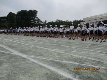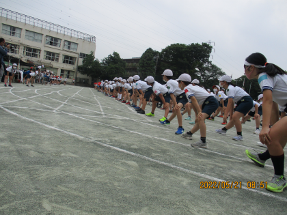 代表児童のリードで準備運動をしました。コオディネーション・トレーニングでは、「くの字運動」「sの字運動」などで、けがなく安全に運動できるように体の動きを整えました。