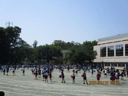 小学校初めての運動会です。音楽に合わせて楽しく、元気よく踊りました。