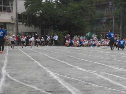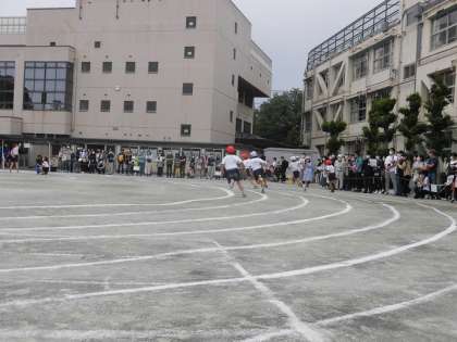 5年生は今年から100mを走ります。スピードを落とさずにコーナーを走る姿、最後まで全力で走り切る姿はさすがでした。