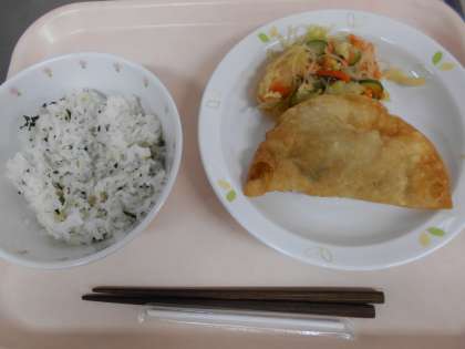 わかめごはん ジャンボぎょうざ 春雨サラダ 牛乳