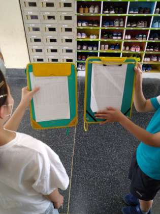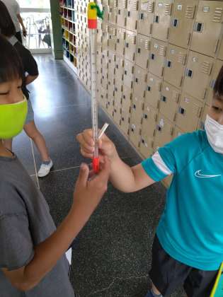 理科で1日の気温の人変化を調べています。時刻による違いを調べるために、何度も同じ場所にきて測っています。天候による違いもありそうですね。太陽の位置と気温の関係も調べていきます。