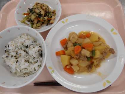 わかめごはん 肉じゃがうま煮 磯辺和え 牛乳