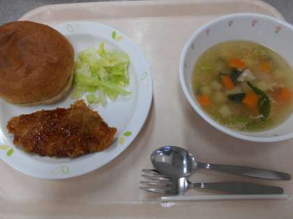 セルフフィッシュバーガー コンソメスープ 牛乳