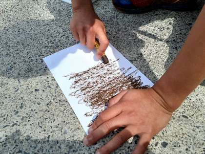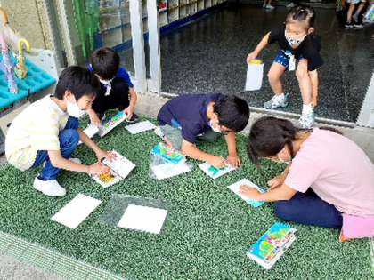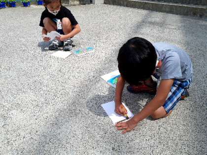 1年生の図工では、クレパスを使って学校の敷地にある様々な模様を画用紙に写しとる活動をしていました。凹凸のある場所を見つけて画用紙を置きクレパスで優しく画用紙を擦ると模様となって写しとることができます。クレパスの新たな活用法を知りました。意欲的に活動をしていました。写し取った模様を生かして今後の作品作りにつなげていく予定です。