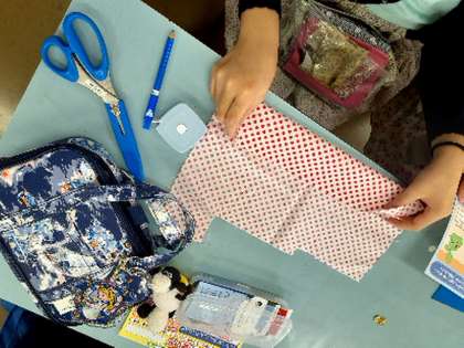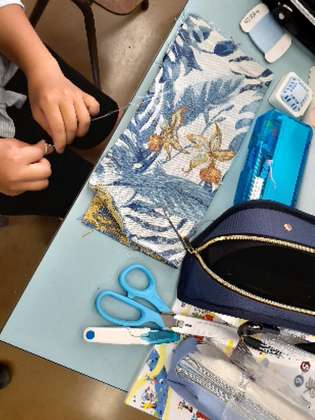 5年生の家庭科の様子です。裁縫道具を使って生活に役立つ物を自分の力で製作する活動をしていました。クッションや財布、妹にあげるぬいぐるみなど、それぞれの考えで作る物を決めていました。玉止め、玉結びなどの身に付けた裁縫技術を駆使して製作に取り掛かっていました。完成が楽しみです。