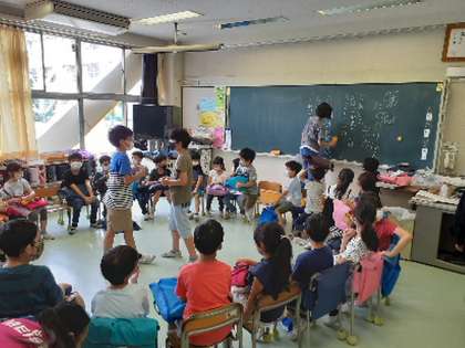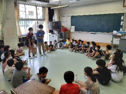 縦割り班活動が行われました。1年生から6年生を縦割りの班にして、異学年の集団を作りました。交流活動を通して、望ましい人間関係を育てることがねらいです。今日は、はじめて集まるので、自己紹介をしました。「○年○組〜です。好きなことは、勉強です!」などなど、みんなの好きなことを知ることができました。次に、これからの予定を立てました。6年生が中心となって会を進行するので、うまく行かないこともありましたが、互いに協力して、乗り越えていく姿がみられました。最後に縦割り班用の名札を作って終わりました。