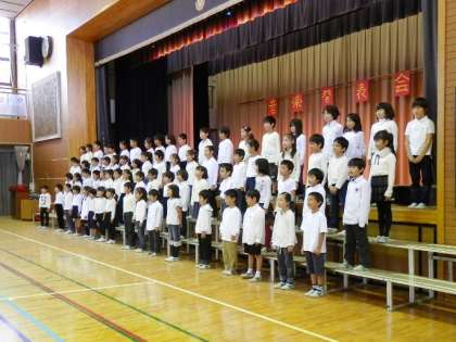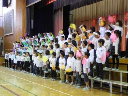 共通曲の「夕やけこやけ」は出だしが伴奏なしのいわゆるアカペラでした。聞き入ってしまいました。「にじ」では7色のハンカチがとても鮮やかでした。