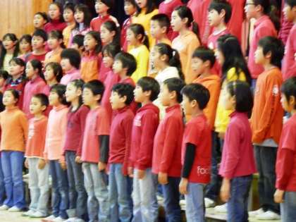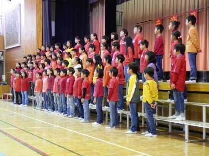 共通曲「もみじ」の聴きどころは、中盤以降の2部合唱です。昔から歌われている曲ですが、何度聞いてもいい曲です。「怪獣のバラード」は、ギャングエイジと呼ばれる4年生にぴったりの曲でした。活き活きと歌う姿が印象的でした。