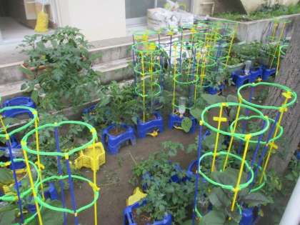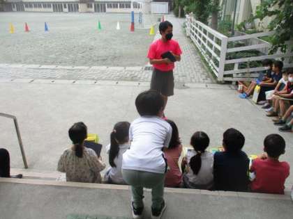 2年生の育てている夏野菜がぐんぐん大きくなっています。「花が咲きました。」「ミニトマトが3つ、なったよ。」と教えてくれました。いつ頃、収穫できるでしょうか、楽しみです。大きくなった様子を観察カードにまとめます。