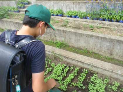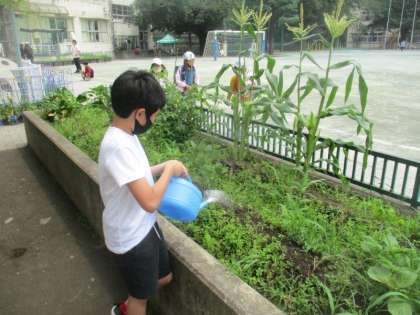 いろいろな学級や委員会活動等で子どもたちが育てている植物がぐんぐん大きく育っています。子どもたちが水をあげたり、雑草を抜いたりする場面をよく見かけます。「芽が出たよ。」「葉が大きくなってきた。」と教えてくれる声は、とてもうれしそうです。