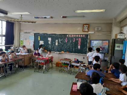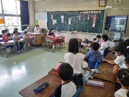 3年3組の学級会では、「クラスマークを決めよう」という議題で学級会を開いていました。こんなクラスにしたいという思いが、ひとつのマークに反映できるよう色や模様にもこだわって活発に意見を出し合っていました。学級への思いが更に育つ取組になっていました。
