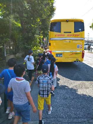 4年生が美術鑑賞教室で世田谷美術館に出発しました。バスで行きます。おしゃべりをせず静かに過ごすことができています。