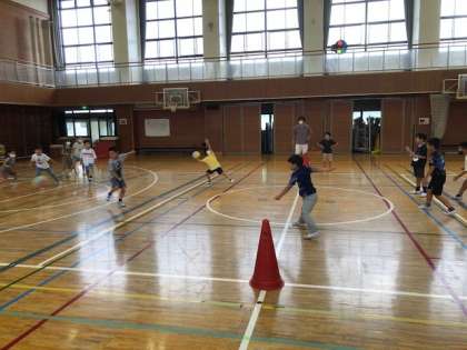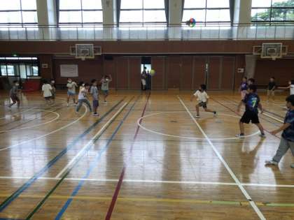 2年3組が体育館でクラス遊びのドッジボールをしていました。チーム決めやルールもみんなが楽しめることを大事にしながら自分たちで決めました。みんな楽しそうに遊ぶことができました。途中からボールを2個に増やし、逃げるのが難しくなりましたが、2個に増えたことでたくさんの子がボールを投げるチャンスをもらうことができていました。自分の楽しさだけでなく「みんなが楽しめること」このことを大切にしています。