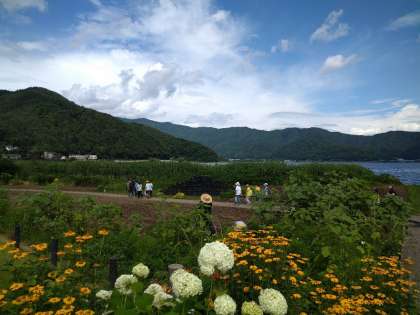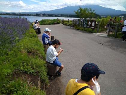 大石公園に着きました。ソフトクリームを食べました。バニラ、ブルーベリー、ミックスから好きなものを選びました。「おいしかった〜」と満足そうです。