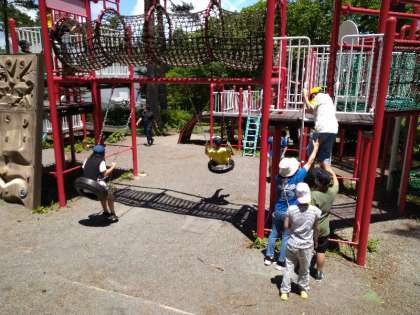広い遊具広場で遊び始めました。ローラーすべり台もあり、すべった子から「気持ちいい!!」という声が聞かれました。