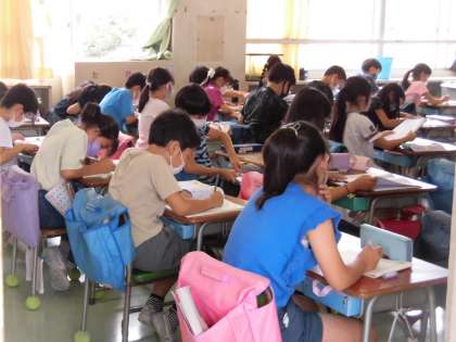 1学期もあと2週間足らずとなりました。どの学年でも4月から学んだことのまとめを行っています。子どもたちは、学習した内容がどれだけ身に付いたのかを試すテストに、一生懸命取り組んでいます。いつもは活発な発言がきかれる教室も静まり返り、テストを解く表情に真剣さがみなぎっていました。