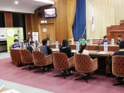 お昼をすませ、バスで10分ほど乗り、ついたのは国会議事堂です。初めに国会議事堂内を見学しました。衆議院の本会議場、天皇陛下の御休所、委員会室などを見学しました。その後、参議院の特別体験プログラムをやりました。ここでは、国会の役目である、法律がどのようにできるのかを、簡易なシュミレーションにした体験活動がありました。大臣役や委員長役、議長役など、本物さながらの体験でした。