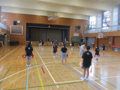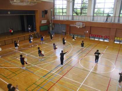 勇ましいパーランクーの音が聞こえてきます。体育館でHAPPY☆エイサーズのみなさんが練習をしています。姿勢よく一つ一つの動きを確かめる横顔は、真剣です。頼もしさを感じます。7月30日には、「新宿エイサーまつり」に出演します。がんばってください!