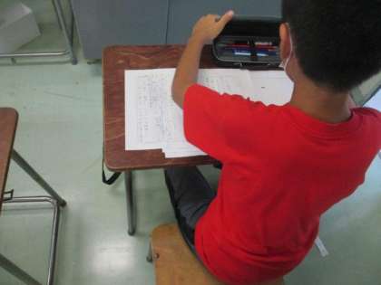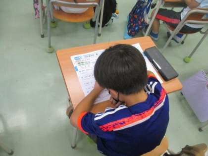 サマースクールの4日目が終わりました。どの教室も集中して自分の課題に取り組む姿が見られました。分からない問題を先生から考え方ややり方を聞いて、分かった時には、にっこりとうれしそうな笑顔が見られました。読書感想文の下書きをして、清書をする子や、「夏休みの宿題は、ほとんど終わったよ。」と教えてくれる子もいました。