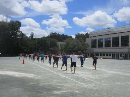 HAPPY☆エイサーズのみなさんが練習を重ねています。「新宿エイサーまつり」をシミュレーションし、校庭で列をつくって練習しています。本番は、7月30日です。皆さんの活躍が楽しみです!