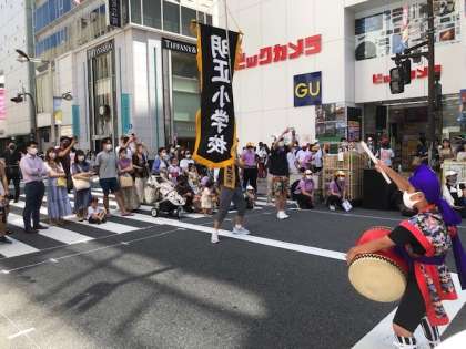 7月30日の土曜日に「新宿エイサーまつり」が行われ、本校の明正小ハッピーエイサーズが出場しました。当日は猛暑の中でしたが、2回の出演機会を現金踊りきりました。教員も一緒に参加し、それまでの練習の成果を存分に発揮することができました。みんなにとって夏の良い思い出となりました。