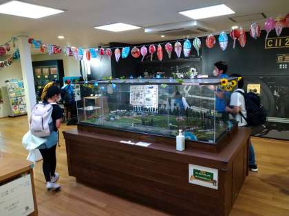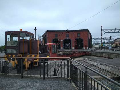 SLの転車台と展示室を見学しました。汽笛が聞こえています。